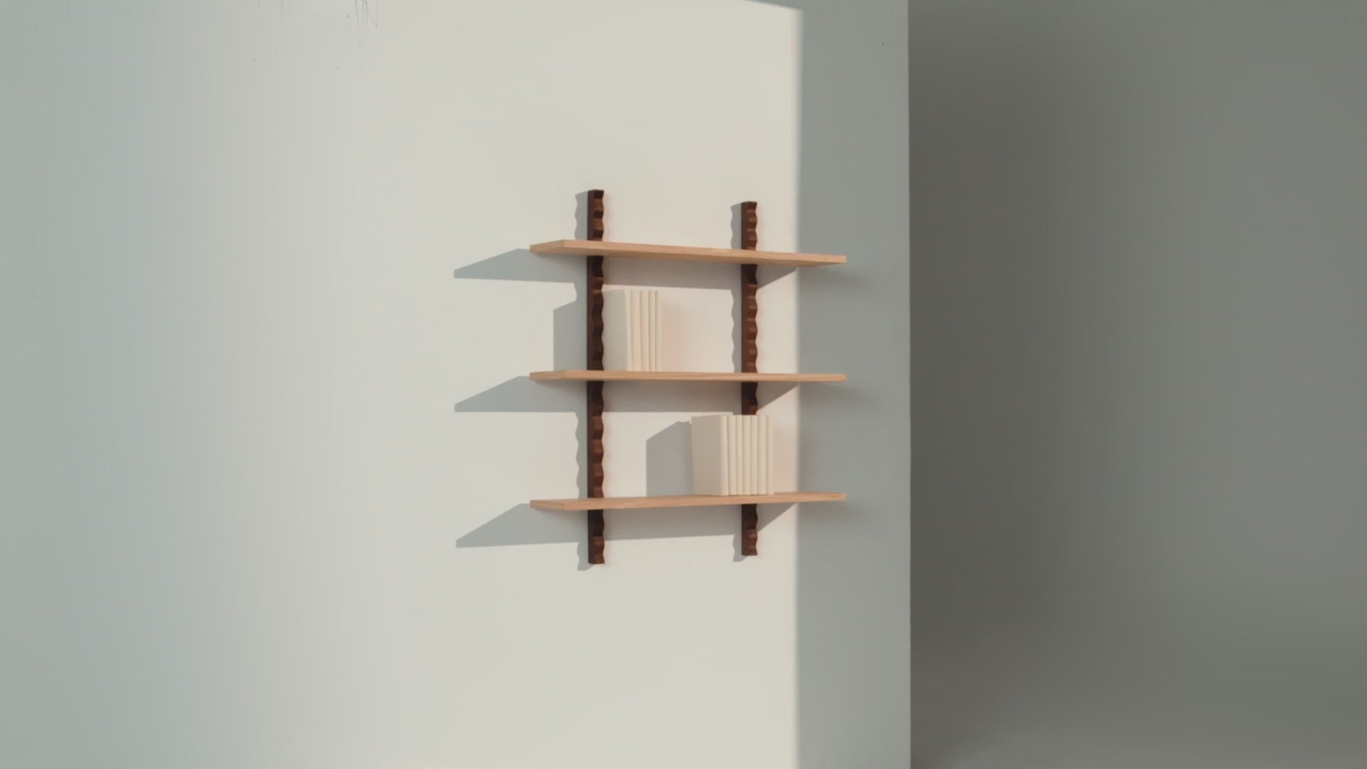 Cette étagère murale, fruit de la collaboration entre Nobodinoz et le Studio Heju, est conçue comme une véritable sculpture : les montants en bois aux formes organiques, inspirés des ondulations naturelles et des lignes épurées du design japonais, apportent une touche artistique subtile. Le mariage du frêne clair et du bois foncé crée un contraste raffiné, tandis que les finitions soignées font de cette pièce un élément intemporel, pensé pour traverser les générations.